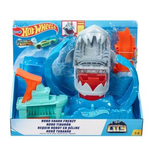 Hot Wheels Toy Car Track Set, Robo Shark Frenzy Playset & Color Shifters Car مسار سيارة القرش مع تغير لون السيارة