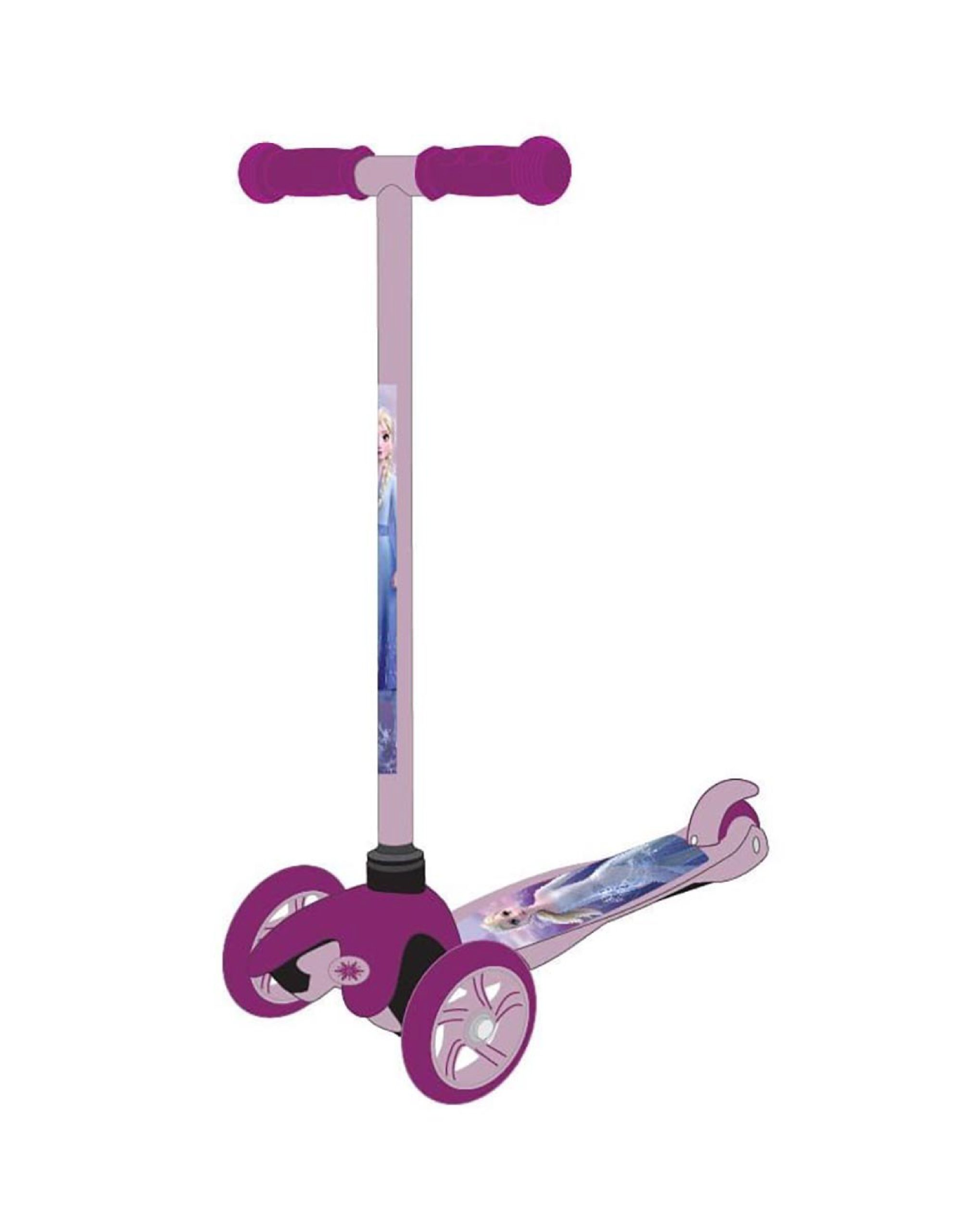 سكوتر للأطفال بعجلتين أماميتين يمكن توجيههما يمينًا/يسارًا عن طريق تحريك المقود إلى الجانبين.